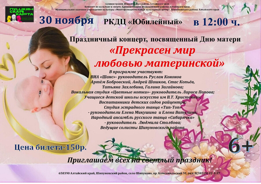 658390 Алтайский край, Шипуновский район, село Шипуново, пр. Комсомольский 91, тел: 8(38515022-1-37