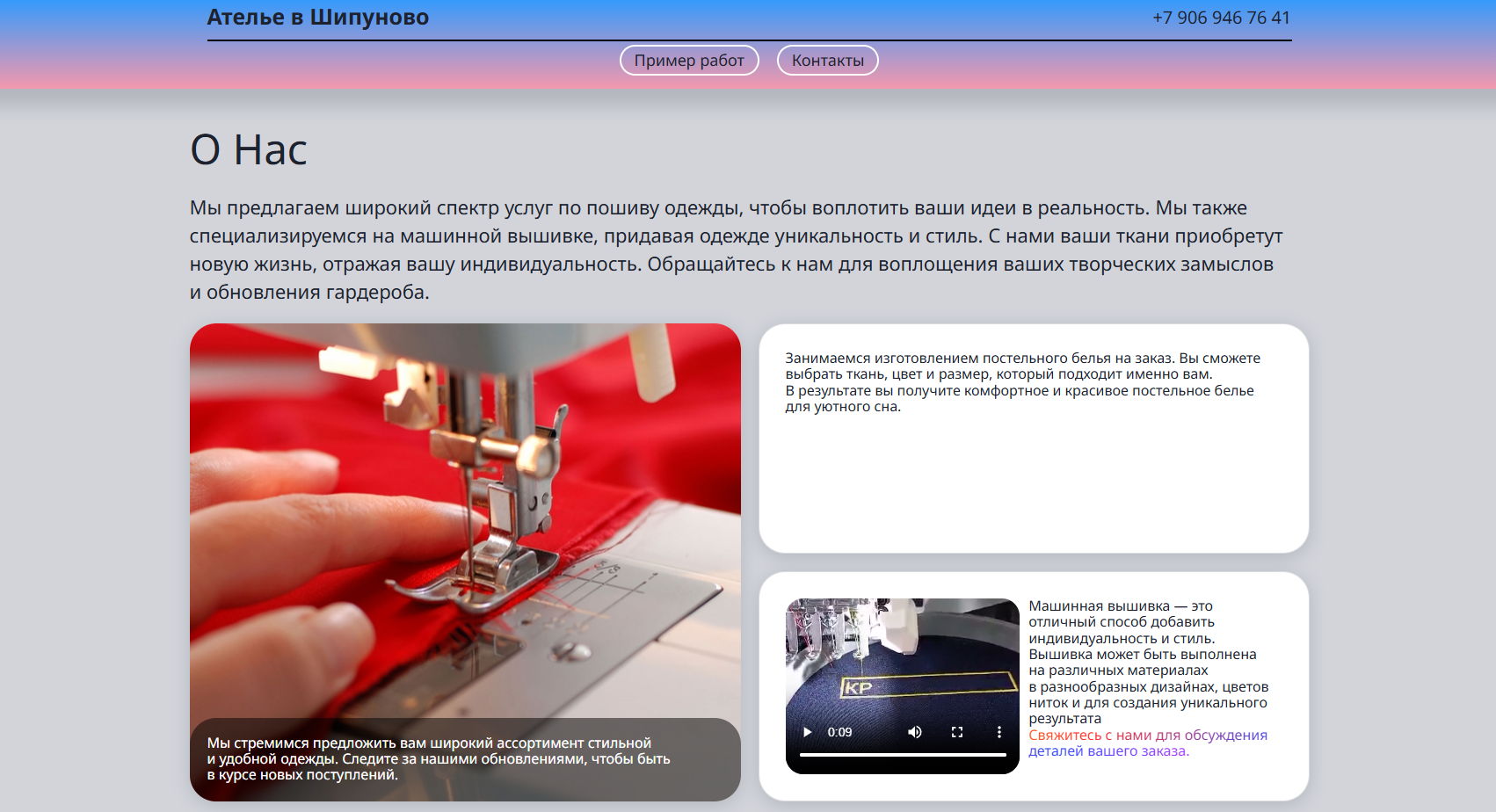Предлагаем широкий спектр услуг по пошиву одежды, чтобы воплотить ваши идеи в реальность. Мы также специализируемся на машинной вышивке, придавая одежде уникальность и стиль. С нами ваши ткани приобретут новую жизнь, отражая вашу индивидуальность. Обращайтесь к нам для воплощения ваших творческих замыслов и обновления гардероба