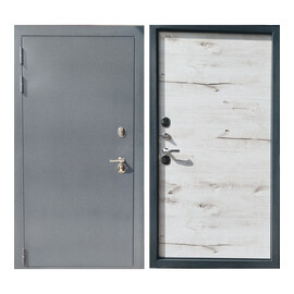 Двери Барин-2 Букле Графит/Арктик. "Внешнее покрытие: атмосферостойкое порошково-полимерное, цвет «Букле графит», Внутреннее покрытие: МДФ-панель - 16 мм, цвет пленки: «Арктик» Толщина дверного полотна: 112 мм Глубина дверного короба: 138 мм Терморазрыв: